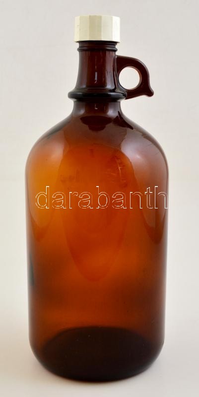 Régi 3 l füles üvegpalack, pótolt kupakkal, m:31 cm