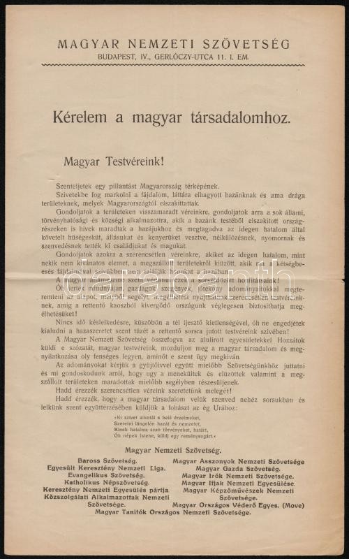 cca 1920 A Magyar Nemzeti Szövetség gyűjtőíve az elszakított területek...