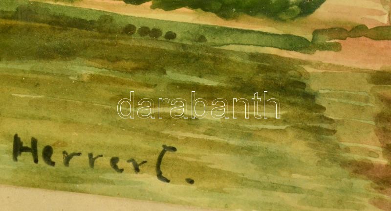 Herrer jelzéssel: Árnyékos pad a vár tövében, akvarell, papír, paszpartuban, üvegezett fa keretben, 19×27 cm