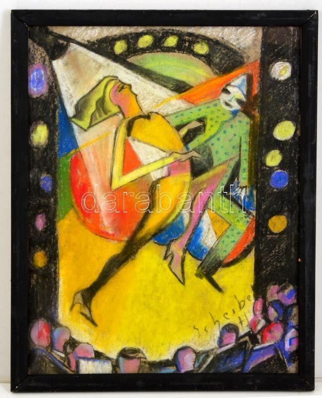 Scheiber jelzéssel: Színpadon. Pasztell, papír, üvegezett keretben, 40...