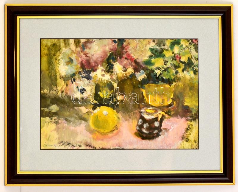 Schéner Mihály (1923-2009): Asztali csendélet. Vegyes technika, papír,...