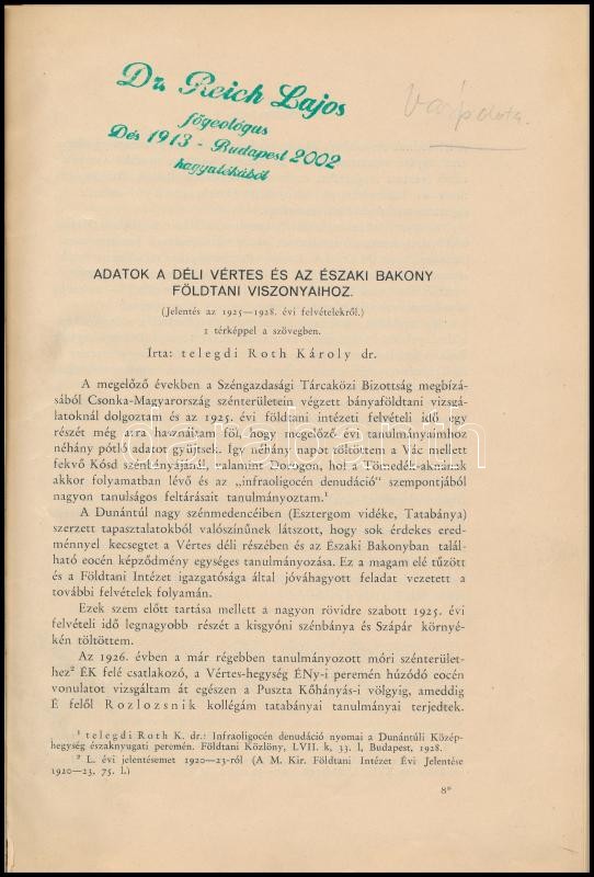 cca 1935 Bakony, Vértes, Várpalota környékével foglalkozó tanulmányok ...