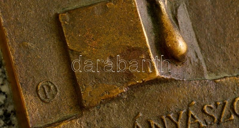 1998 Popovics Lőrinc (1953- ): Szent Borbála, a bányászok védőszentje, bronz kisplasztika, márvány talapzaton, jelzett, 15×6,5 cm