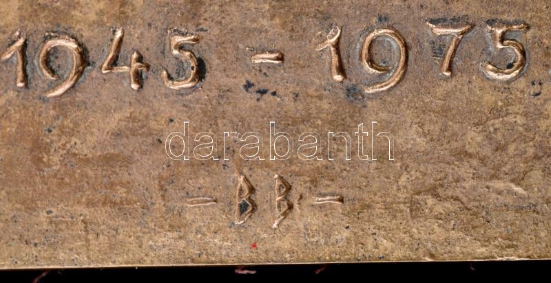 Búza Barna (1910-2010): Felszabadulás 1945-1975. Bronz téglalap alakú plakett (gipszel súlyozott), jelzett, eredeti dobozában, 31×14 cm