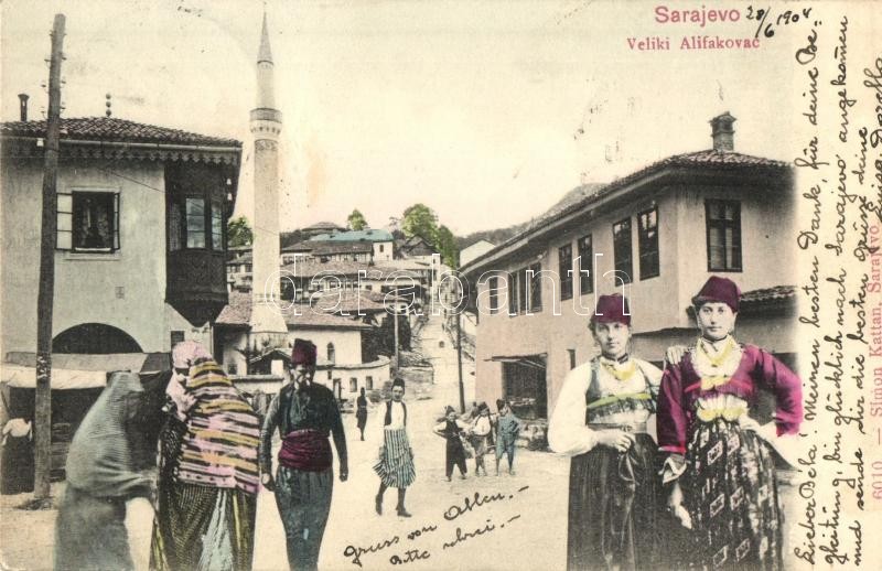1904 Sarajevo, Veliki Alifakovac / neighborhood, street view, montage postcard (fa)