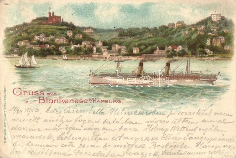 1900 Blankenese (Hamburg), steamship. Kunstanstalt J. Miesler litho (E...