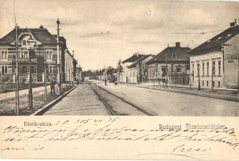1905 Budapest VIII. Tisztviselőtelep, Elnök utca, villamos (lyuk / hole)