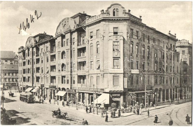 Budapest II. Margit körút 5. Szeiffert Antal kávéháza, Deutsch Ferenc üzlete, villamos