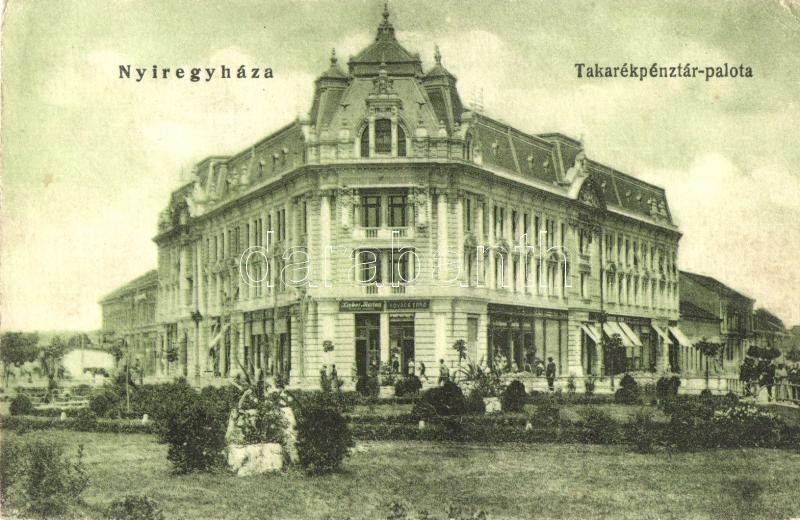 Nyíregyháza, Takarékpénztár palota, Lieber Márton, Kovács Ernő üzlete ...