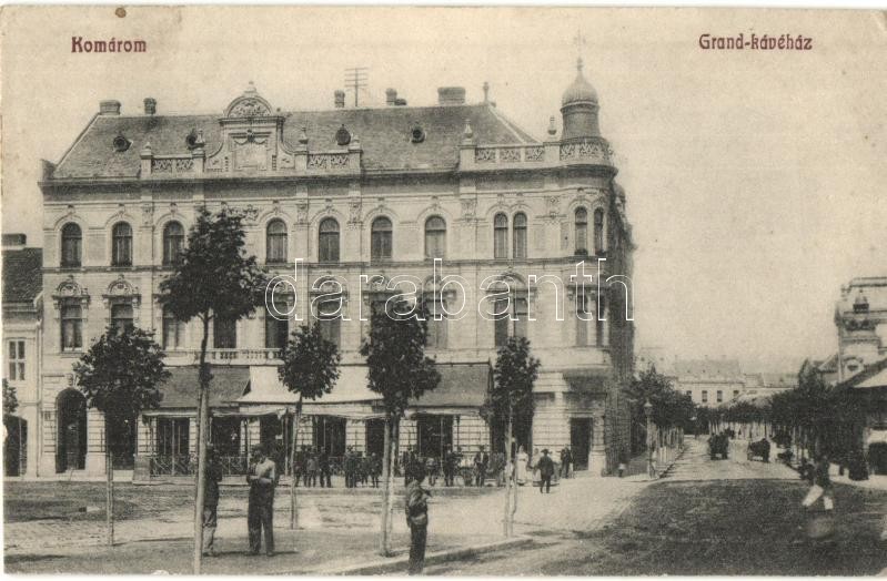 Komárom, Komárno; Grand Kávéház. Kiadja Laky Béla / Grand Café (ázott ...
