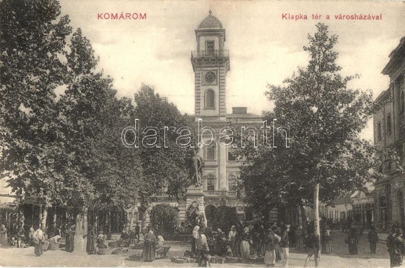 Komárom, Komárno; Klapka tér, Klapka György szobor, Városháza, piaci á...