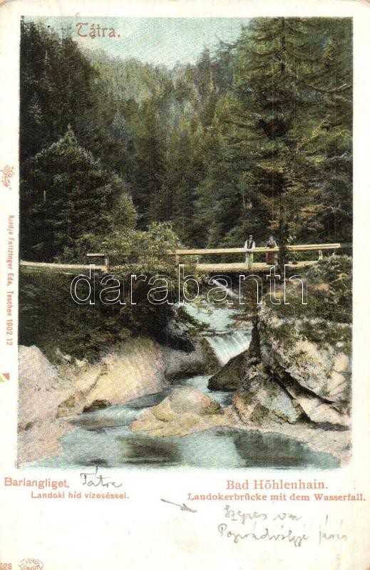 Tátra, Barlangliget, Höhlenhain, Tatranská Kotlina; Landoki híd vízeséssel. Feitzinger Ede 528. 1902/12. / bridge with waterfall (EK)