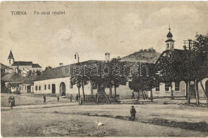 Torna, Turna nad Bodvou, Turnau; Fő utca, templom / main street, churc...