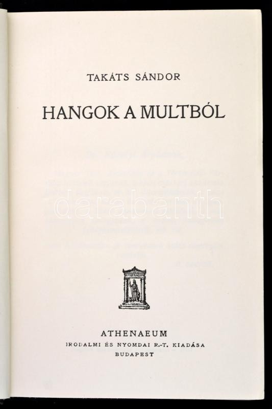 https://www.darabanth.com/en/324-Online-auction/324.0/Books/Books-History~1000004/Takats-Sandor-Hangok-a-multbol-Bp-1930-Athenaeum-Masodik-kiadas-Kiadoi-festett-egesz~II1803383