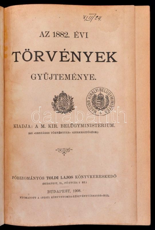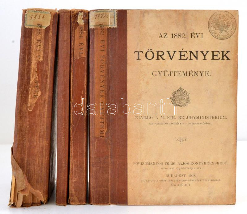 https://www.darabanth.com/en/324-Online-auction/324.0/Books/Books-Law~1000003/Az-1882-1884-1885-1888-evi-torvenyek-gyujtemenye-Bp-1908-Belugyminiszterium-Korabeli~II1470934