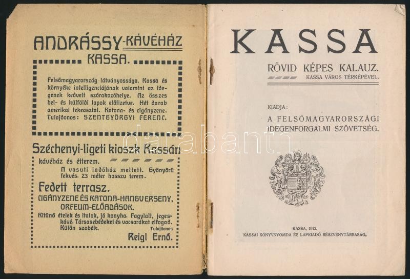 Kassa. Rövid képes kalauz. Kiadja: A Felsőmagyarországi Idegenforgalmi... https://www.darabanth.com/en/324-Online-auction/324.0/Books/Books-Travelling-Local-History~1000001/Kassa-Rovid-kepes-kalauz-Kiadja-A-Felsomagyarorszagi-Idegenforgalmi-Szovetseg-Kassa-1912-~II1802677