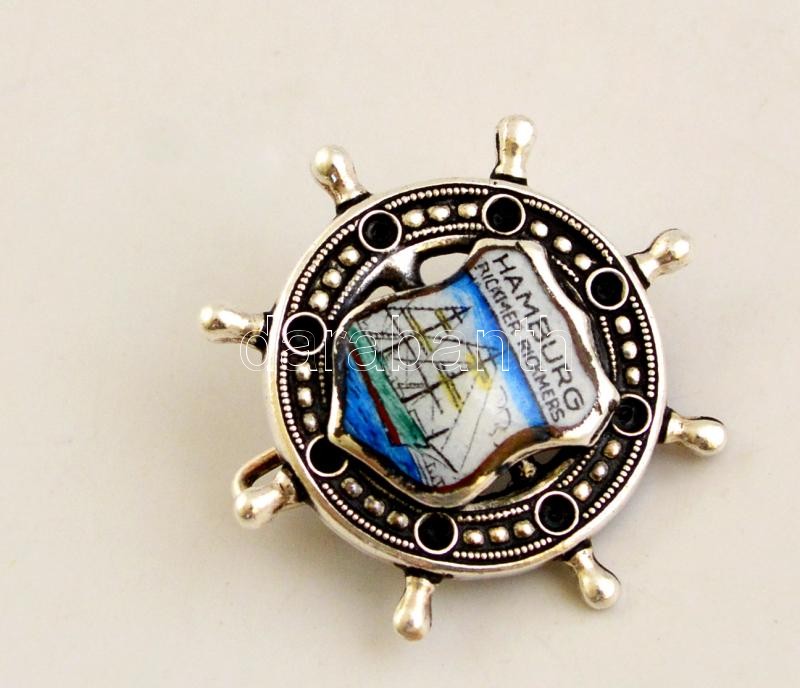 Ezüst(Ag) "Hamburg" zománcos kitűző, jelzés nélkül, d: 2,6 c...
