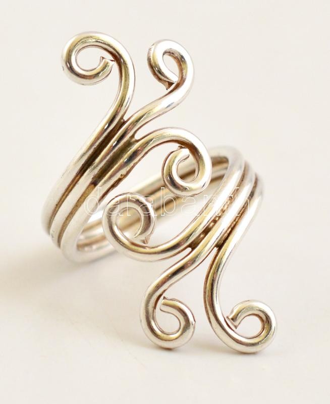 Ezüst(Ag) csavart indás gyűrű, jelzett, méret: 49, nettó: 4,2 g