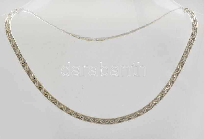Ezüst(Ag) lapos mintás kígyó, jelzett, h: 40,5 cm, nettó: 8 g