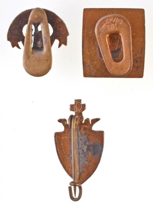 3db-os vegyes magyar jelvény tétel, közte ~1930. "M.É. (Magyar Élet Pártja)" festett Br gomblyukjelvény, "LUDVIG BP." gyártói jelzéssel T:2