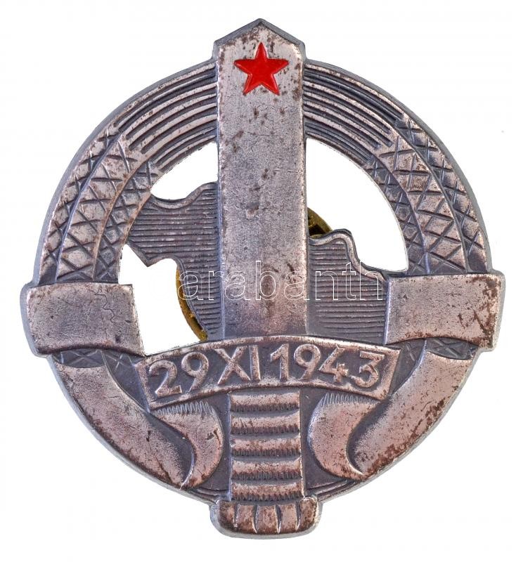 Description: Jugoszlávia 1943. "29 XI 1943 (Demokratikus Föderatív Jugoszláv Köztársaság megalakulása)" fém jelvény, "AU. M. SUBOTICA" gyártói jelzéssel (34x32,5mm) T:2
