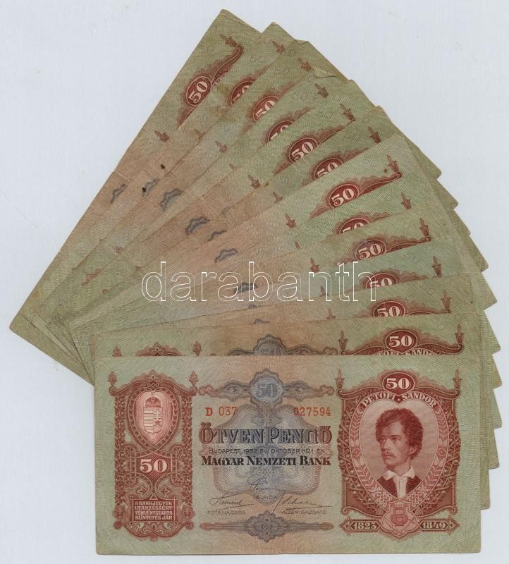 https://www.darabanth.com/en/324-Online-auction/324.0/Numismatics/Hungarian-Banknotes~2500007/1932-50P-13x-TIII-III-~II1800902