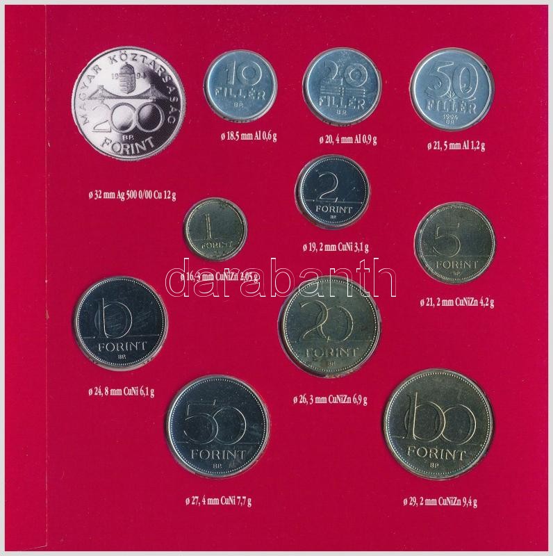 https://www.darabanth.com/en/324-Online-auction/324.0/Numismatics/Hungarian-coins-and-coins-with-Hungarian-mint-marks~2500008/1994-10f-200Ft-11xklf-forgalmi-sor-disztokban-kozte-1994-200Ft-Ag-Deak-Magyarorszag-pe~II1744263