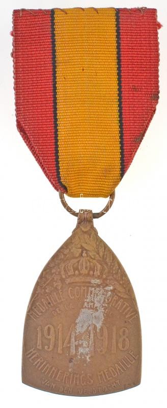 Belgium 1919. "Háborús Emlékérem 1914-1918" Br kitüntetés mellszalagon T:2 hátoldalán fo.