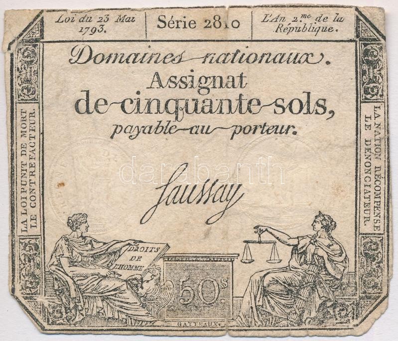 https://www.darabanth.com/en/324-Online-auction/324.0/Numismatics/Worldwide-banknotes~2500012/Franciaorszag-1793-50s-Assignata-TIII-III-kis-ragasztas-France-1793-50-Sols-Assignata-CF~II1799680