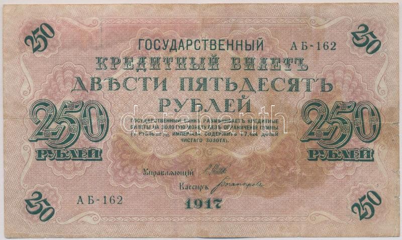 https://www.darabanth.com/en/324-Online-auction/324.0/Numismatics/Worldwide-banknotes~2500012/Orosz-Birodalom-1917-250R-Szign-Shipov-TIII-ly-kis-szakadas-fo-Russian-Empire-1917-250-Ru~II1798751