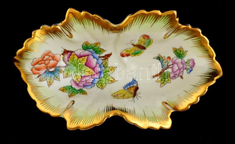 Herendi Viktória mintás leveles tálka, kézzel festett, jelzett, kopásn...