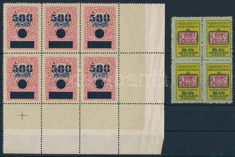 Budapest székesfőváros felülnyomott 500P hatostömb és 50 millió P négyestömb, R!