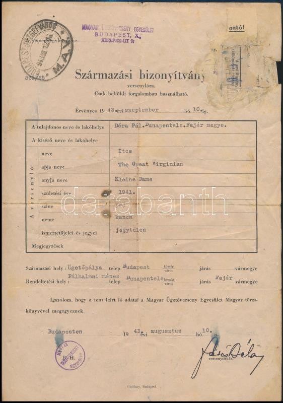 https://www.darabanth.com/en/324-Online-auction/324.0/Other-collectibles/Documents~18/1927-1943-Bp-Csikolevel-es-versenylo-szarmazasi-bizonyitvanya~II1799222