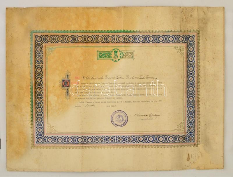 https://www.darabanth.com/en/324-Online-auction/324.0/Other-collectibles/Documents~18/1933-Becs-a-kalazantinusok-tagfelveteli-oklevele-Nanassy-Laszlo-Dezso-iro-reszere-~II1800635