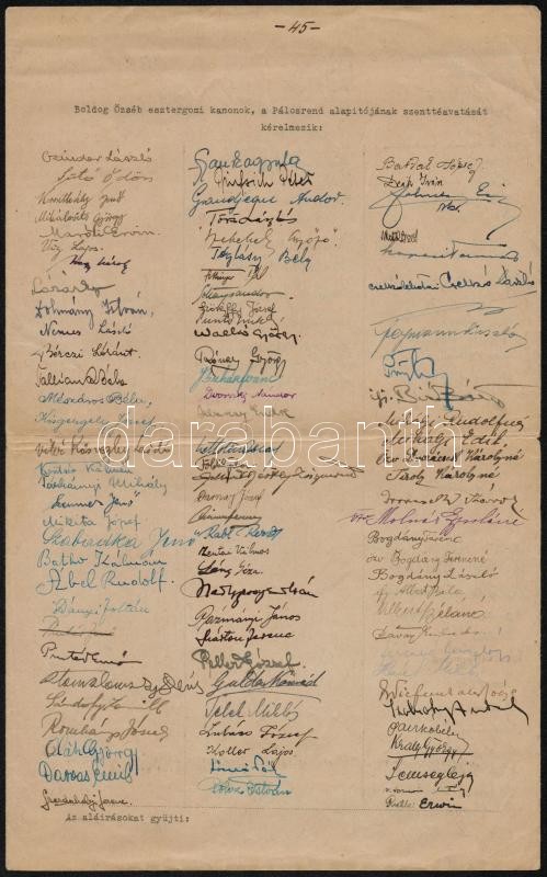 https://www.darabanth.com/en/324-Online-auction/324.0/Other-collectibles/Documents~18/cca-1930-Boldog-Ozseb-a-palos-rend-megalapitojanak-szentte-avatasat-kervenyezok-alair~II1799183