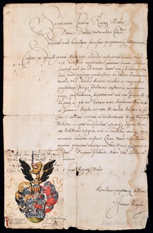 https://www.darabanth.com/en/324-Online-auction/324.0/Other-collectibles/Historical-documents-manuscripts~19/VEDES-ALATT-1660-Hajdu-Janos-cimerkero-folyamodvanya-I-Lipothoz-megfestett-cimerkeppel~II1801033