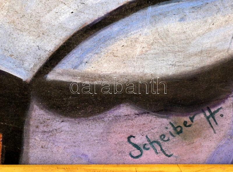 Scheiber jelzéssel: Kalapos nő. Pasztell, karton, foltos, keretben, 57...