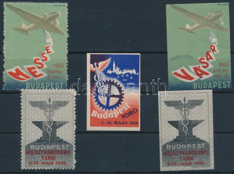 1934-1940 Budapesti Nemzetközi Vásár 5 klf levélzáró