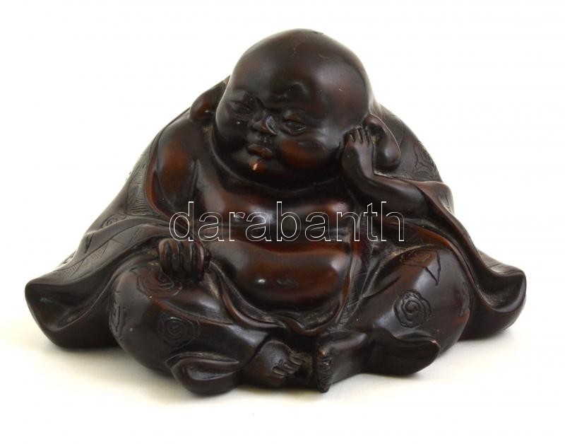 Nevető Buddha erotikus jelenettel (alján), műgyanta, apró lepattanással, m:11 cm, 17×15 cm