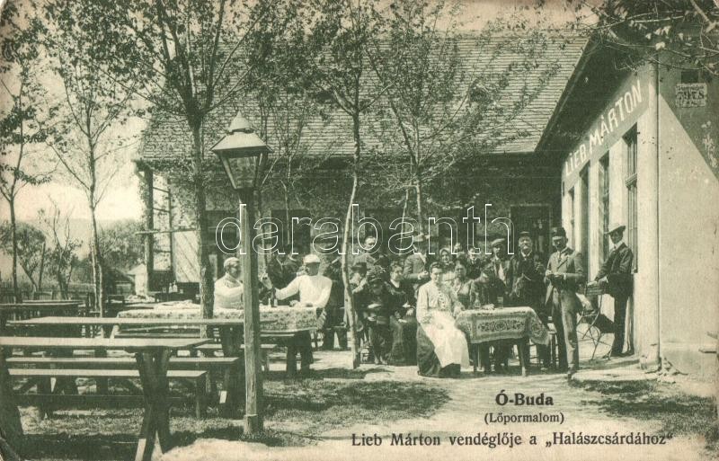 Budapest III. Óbuda, Lőpormalom dülő, Lieb Márton vendéglője a Halászc...