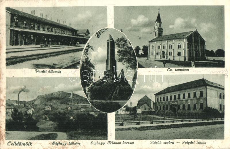 Celldömölk, Vasútállomás, Evangélikus templom, Sághegyi Trianon kereszt, irredenta, Sághegy látképe, Hősök szobra, Polgári iskola (fa)