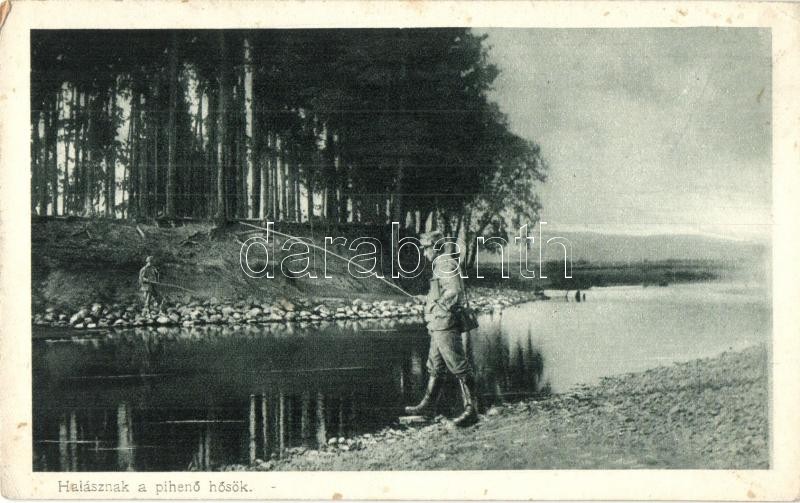Halásznak a pihenő hősök; Az Érdekes Újság kiadása / WWI Hungarian military, fishing soldier (EK)