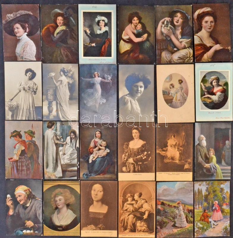 48 db RÉGI főleg használatlan hölgy motívumlap / 48 pre-1945 mostly un...