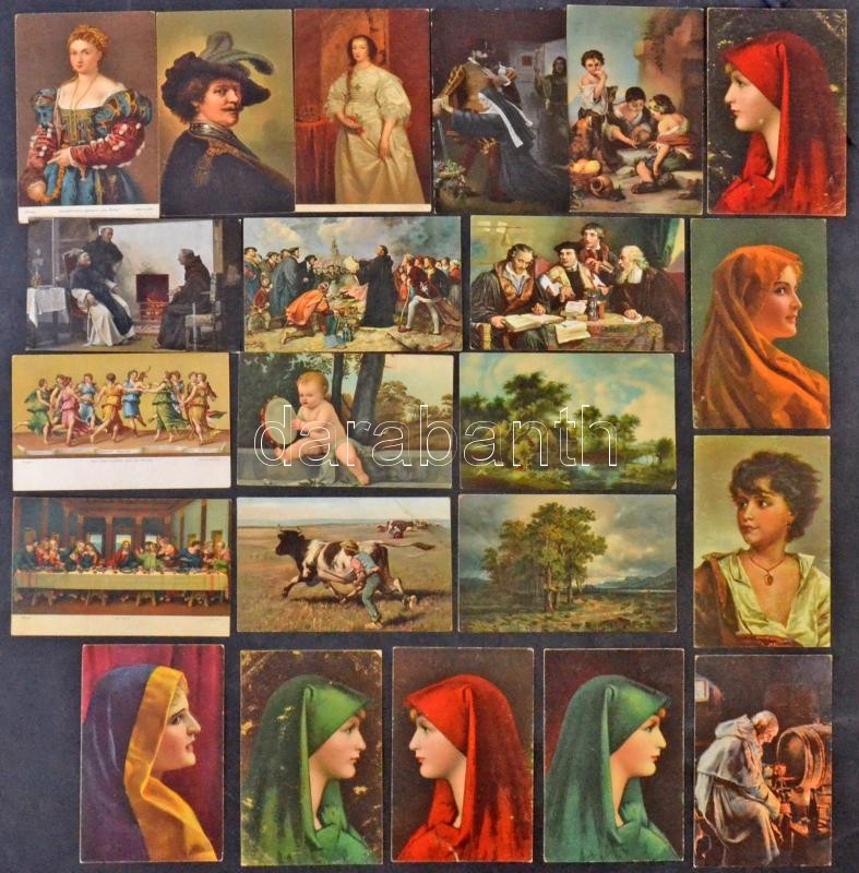 61 db RÉGI főleg megíratlan művész motívumlap, sok Stengel litho lappal / 61 mostly unused pre-1945 art motive postcards with many Stengel litho cards