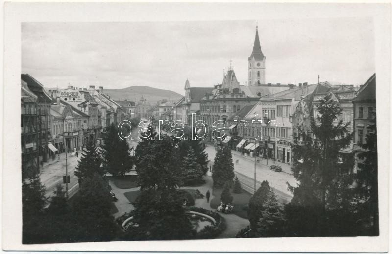 Kassa, Kosice; Fő utca, Főrster, Schnitzer, Schwarcz üzlete, automobil...