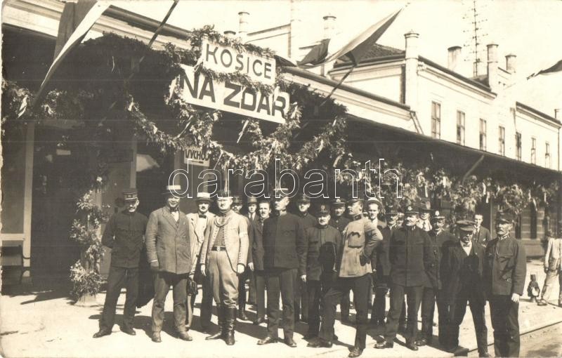Kassa, Kosice; Vasútállomás, vasutasok csoportképe / railway station, railwaymen. Foto-Tátra (Trencín) photo