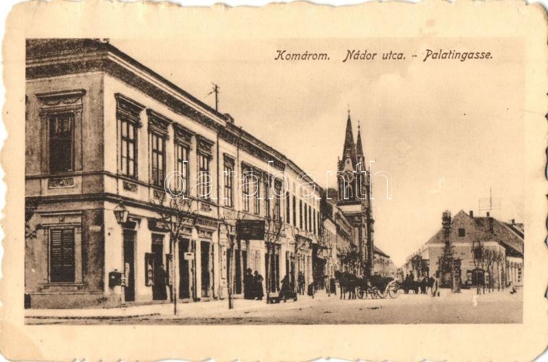 Komárom, Komárno; Nádor utca, üzletek, templom / Palatingasse / street...