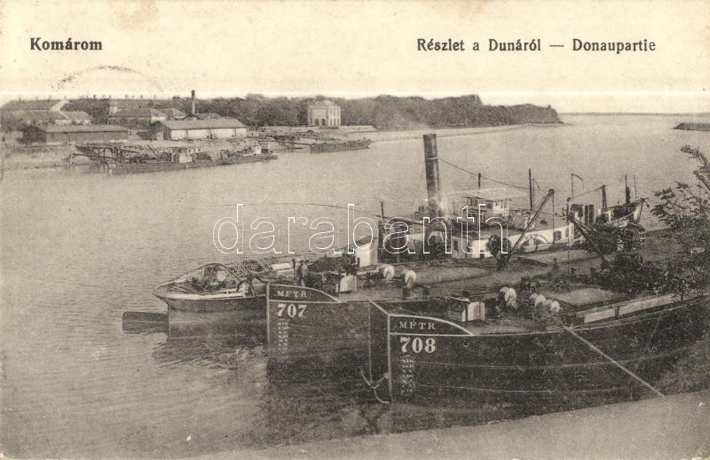 Komárom, Komárno; Részlet a Dunáról, MFTR 707-es és 708-as uszály, mel... https://www.darabanth.com/en/324-Online-auction/324.0/Postcards/Slovakia~2000008/Komarom-Komarno-Reszlet-a-Dunarol-MFTR-707-es-es-708-as-uszaly-mellette-gozhajo-L-H-~II1801046