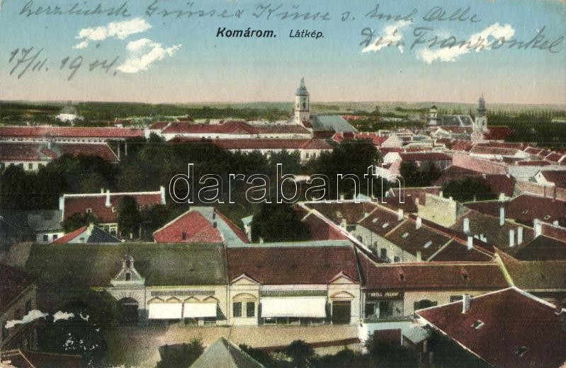 Komárom, Komárno; látkép, Zechmeister János, Brüll József üzlete, temp...