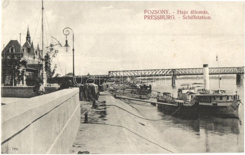Pozsony, Pressburg, Bratislava; Hajóállomás, gőzhajó, híd / Schiffstation / ship station, steamship, bridge (EK)